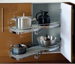 Monteringsvennlig hjørneløsning for blindskap med minimum utvendig bredde 900mm og minimum utvendig dybde 490mm. Max bæreevne 15 kg./hylle. Mer info HER