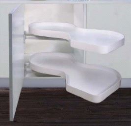 Monteringsvennlig hjørneløsning for blindskap med minimum utvendig bredde 900mm og minimum utvendig dybde 490mm. Max bæreevne 15 kg./hylle.