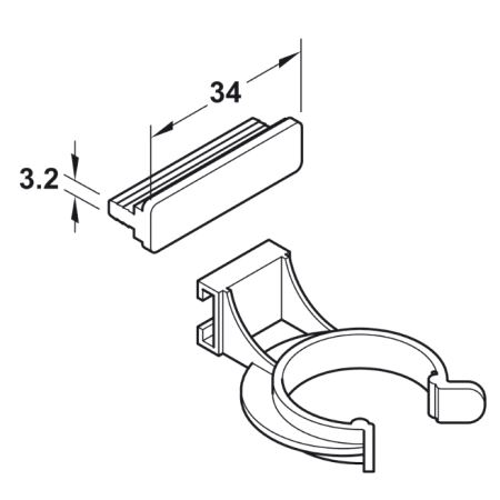 Klips for Axilo sokkelben. For montering i B=3mm notspor. Mer info HER