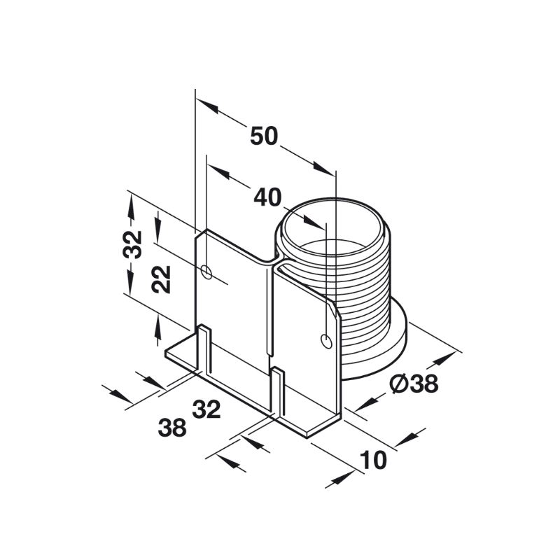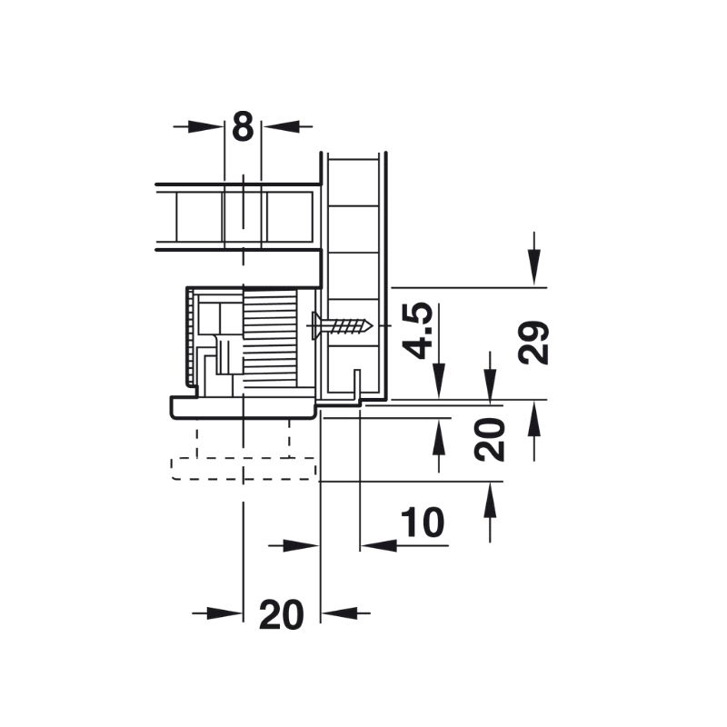 Plate 50 x 32 mm. Justeres fra innsiden av skapet med Unbrakonøkkel. Mer info