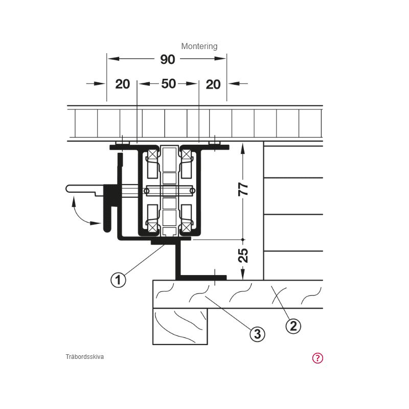 Borduttrekk Synkron L=1.200 Åpning 1.760mm