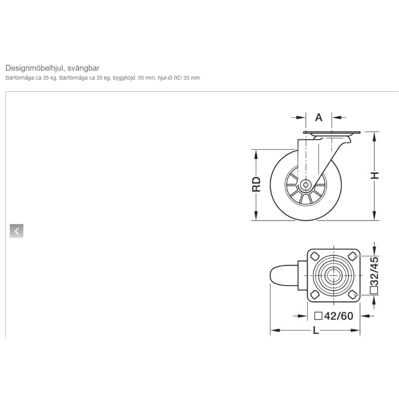 Møbelhjul Ø35 H=50 Transp. Gummi