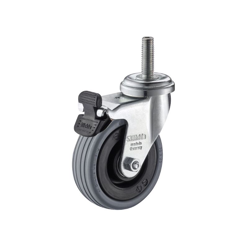 Gummihjul Ø75mm Roterende med M10 bolt, med brems