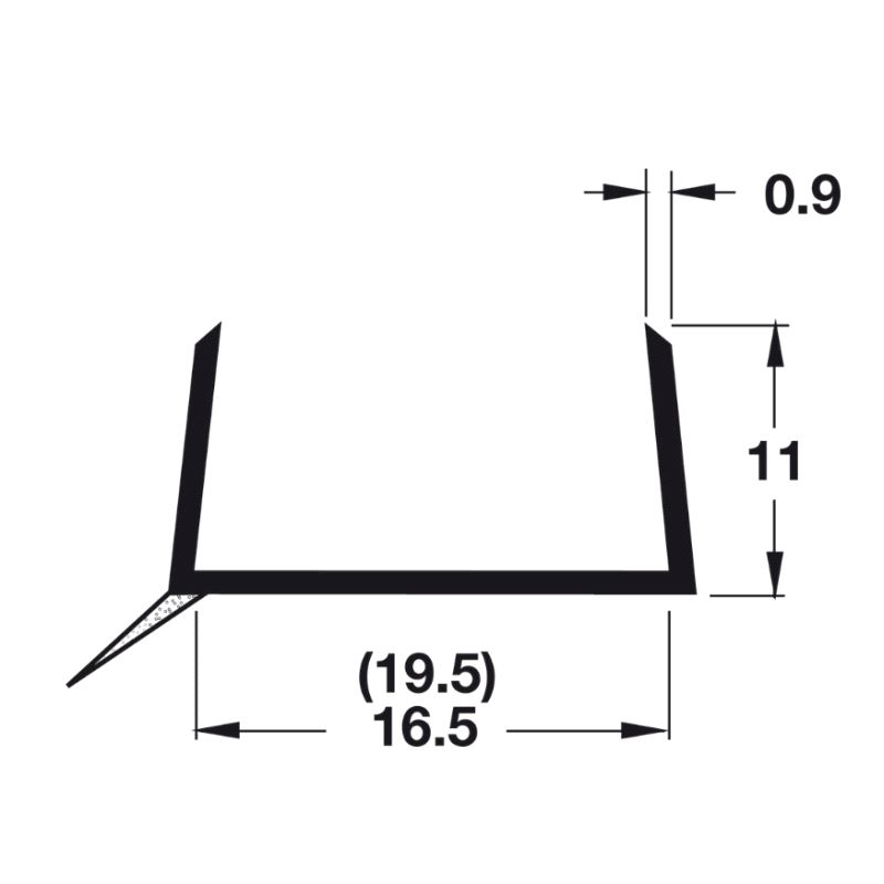 Bunnlistprofil for beskyttelse av sokkelplate med tykkelse 16mm. Lengde 2.500mm. Mer info
