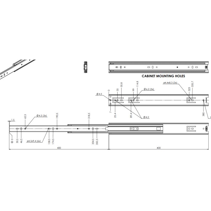Kuleuttrekk med fullt uttrekk. Maksbelastning 45 kg. /par. Mer info