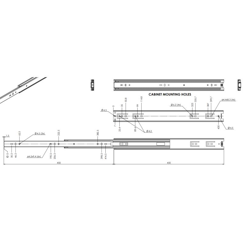 Kuleuttrekk med fullt uttrekk. Maksbelastning 45 kg./par. Mer info