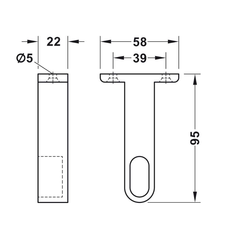 Garderoberør Oval 30 x 14 Sort, Holder Ende