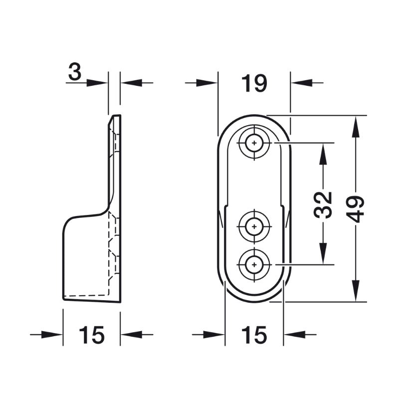 Garderoberør Oval 30 x 15mm Sortlakkert, Endefeste