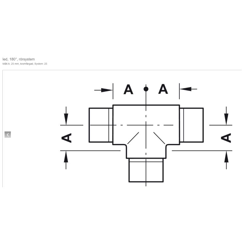 Garderoberør Ø25mm, Feste T-kobling Chrome