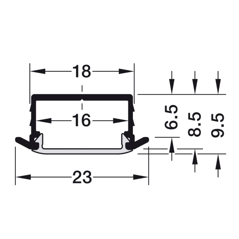 ALU-profil for innfresing, for LED-strips. Lengde 2.500mm. Mer info