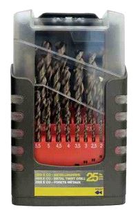 DIN338N Bor for Chrome-nikkel stål og Rustfritt stål. 25 delers sett, diameter fra Ø1 til Ø13mm med step på 0,5mm. Topp kvalitet. Mer info