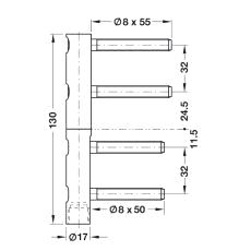 Innboringshengsel Ø17 H=130 Forsinket