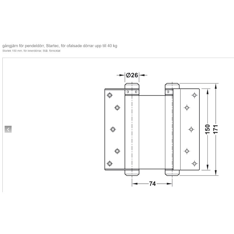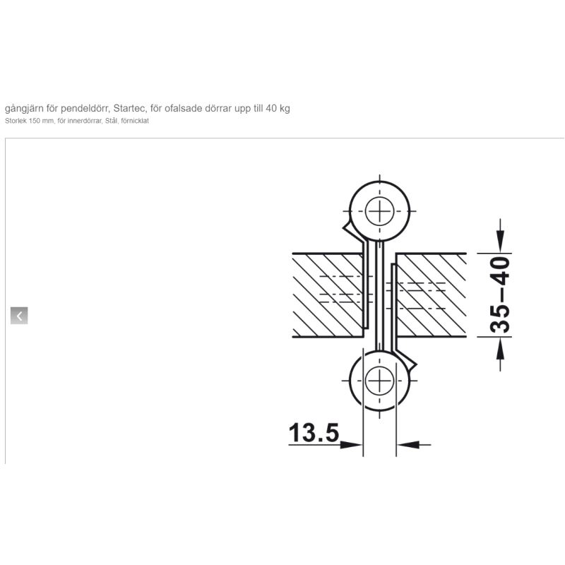 For dørtykkelse 35-40mm og maxvekt 40 kg. Pris gjelder pr.par. Mer info