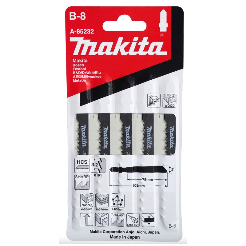 Egnet for materialer som tre og plast. Total lengde 105 mm med en arbeidslengde på 75 mm og 8 TPI. Pakken inneholder 5 blader.