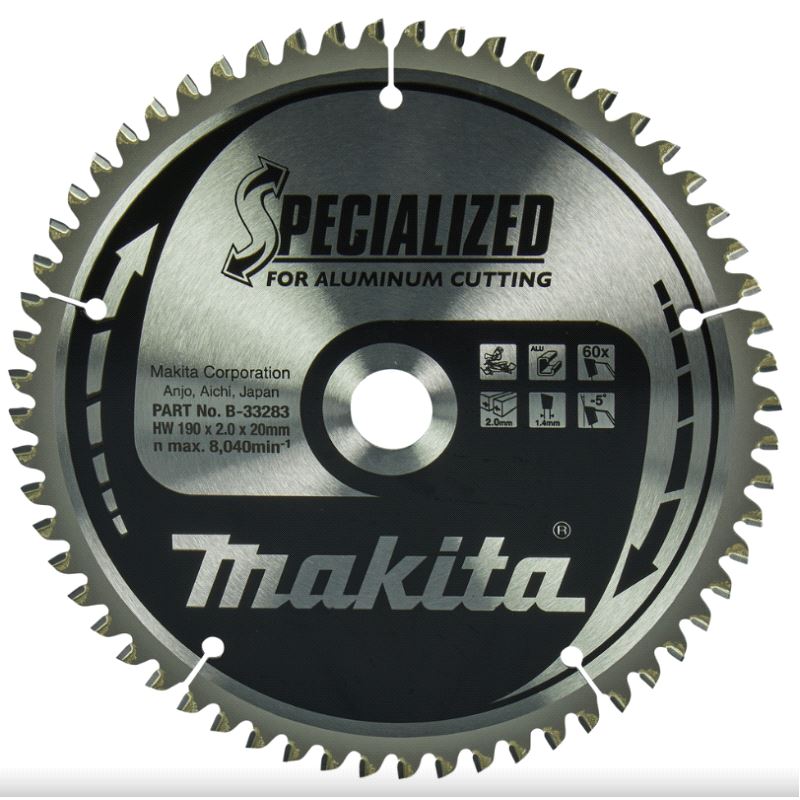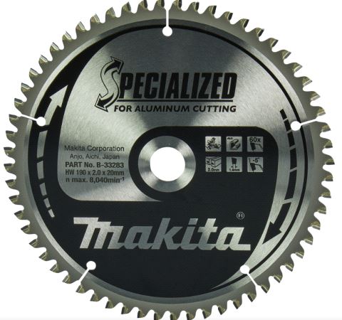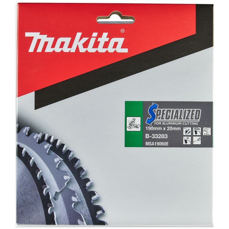 Makita original sagblad Ø190mm Z-60, boring d=20mm for Aluminium. Skjærebredde 2,0mm. Passer f.eks. Makita kapp/gjærsag LS0714. Mer info