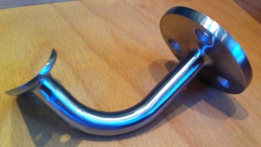 Rekkverkfeste syrefast stål for rør Ø42,4mm. Veggfeste m/ 3 stk. forsenkede skruehull, diameter Ø60mm. Bygger 90mm ut fra vegg. 2 stk. skruehull Ø5mm for feste til rør.