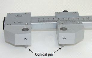 Analogt skyvelære for utvendig måling og måling av senteravstand mellom huller. Levert med koniske tapper for hulldiameter Ø4 - 15mm. Mer info