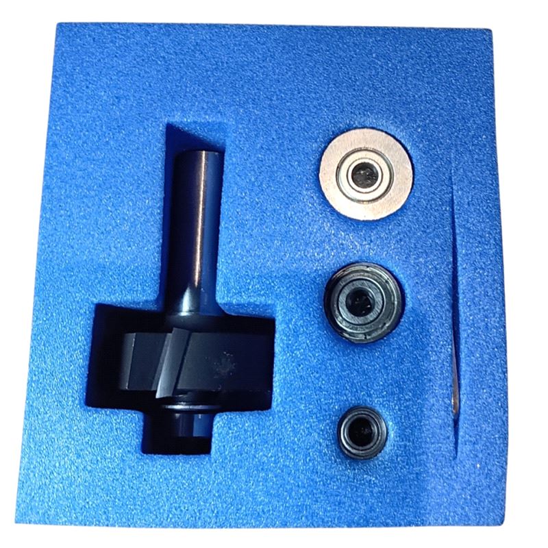 Sett med Falsfres Ø35mm og 4 stk. ringer for falsdybde 8 - 9,5 - 11 og 12,7mm. Tange s=12mm. Mer info