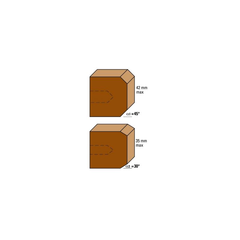 Verktøysett for fasing. Med fas 45° for materialtykkelse 0 - 42mm og fas 30° for materialtykkelse 0 - 35mm. Komplett sats med tange s=12mm. Mer info