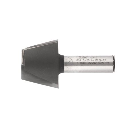 Spesialfres for Corian o.l. Størest diameter Ø23mm. 15°. Tange s=12mm. Mer info HER