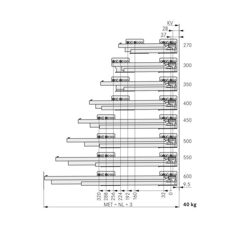 NovaPRO skinne Softclose/Tipmatic. Skinne med demping, forberedt for Tipmatic utkaster som tilvalg. Pris gjelder pr.par. Mer info