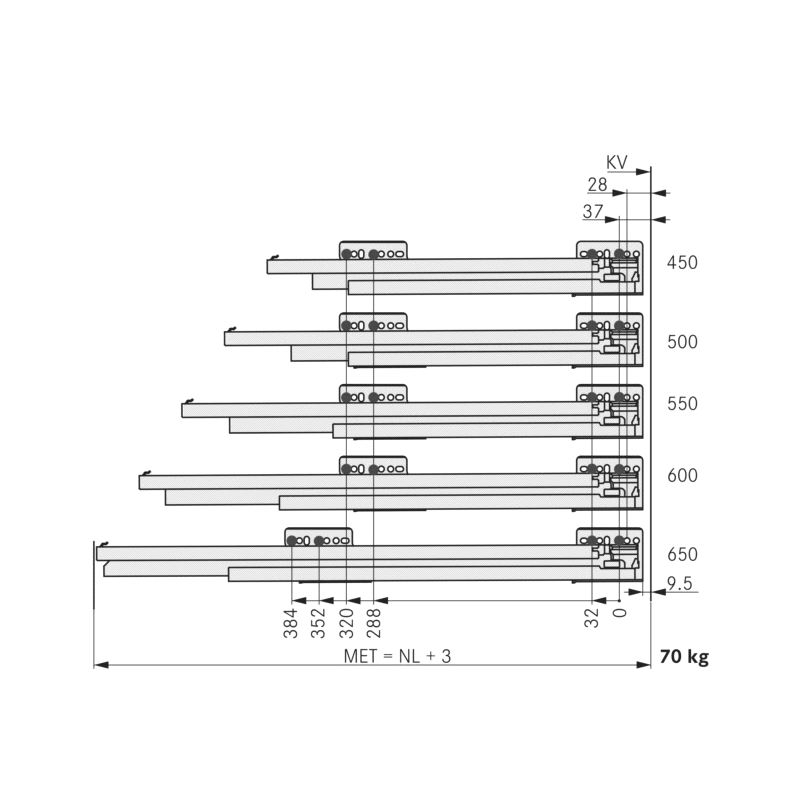 NovaPRO skinne Softclose/Tipmatic. Skinne med demping, forberedt for Tipmatic utkaster som tilvalg. Pris gjelder pr.par. Mer info