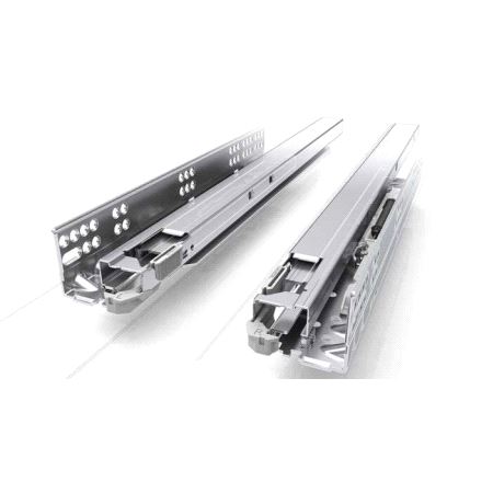 Fullsynkroniserte undermonteringsskinner for treskuff. Med tiltfunksjon og Sidejustering. Brukes som standard Softclose skinne, eller i kombinasjon med