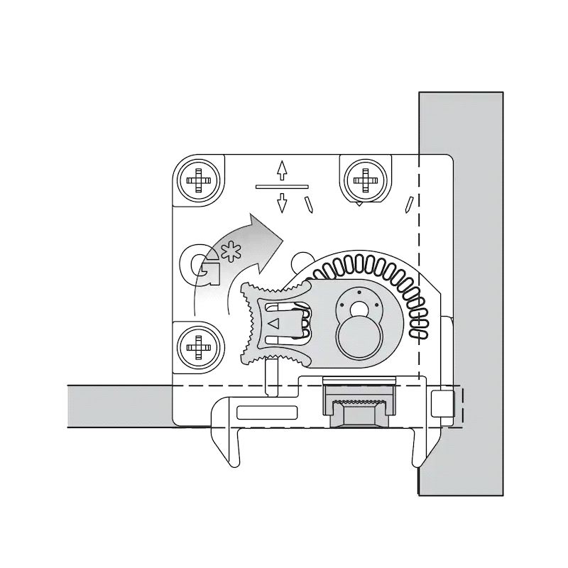 Adapter tilhørende DynaPRO skinner, festes i bakkant av skuffen for tiltfunksjon