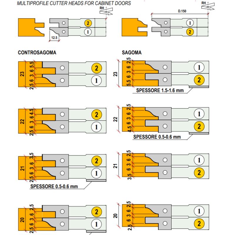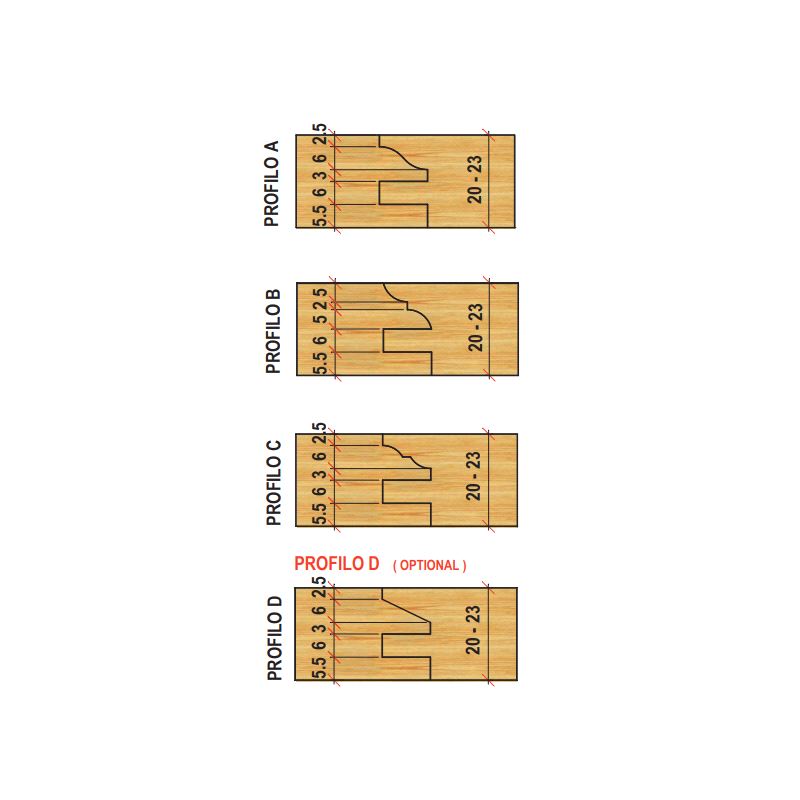 Ramtresett med 4 ulike profiler, egnet for ramtretykkelse 20 - 23mm. Notbredde 6mm. Standard spindelhull d=30/35, Diameter Ø150mm. Mer info