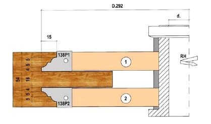 Komplett sats med verktøy for ramtre kontraprofil inntil 54mm tykkelse med tapp 14-16mm. Leveres komplett med alle HM skjær, ferdig satt opp på hylse med innvendig diameter 30/35/40 eller 50mm.