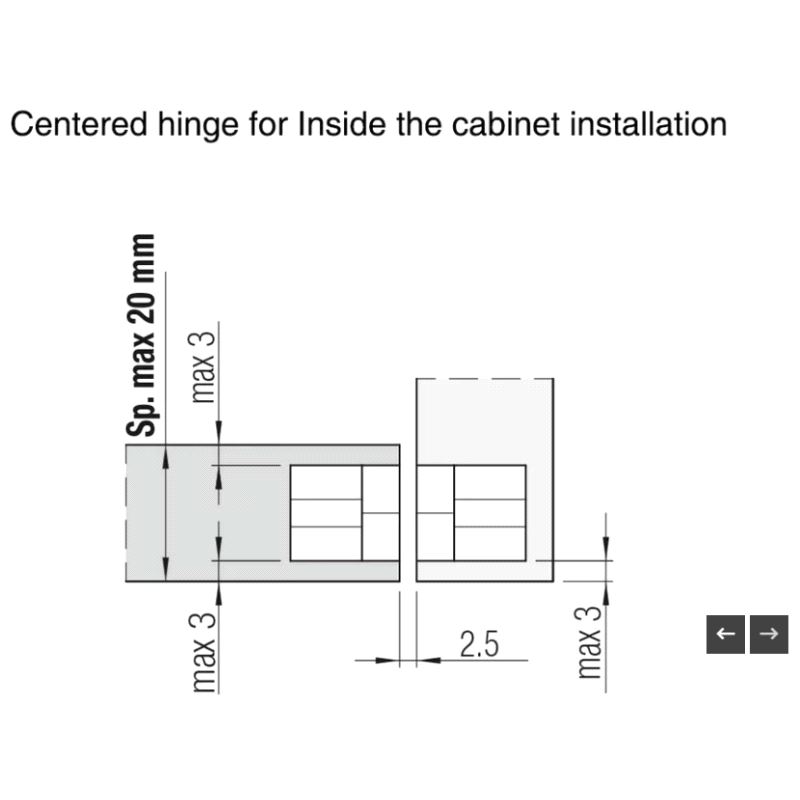 3D Justerbar hengsel for dørtykkelse min. 18mm. Mer info