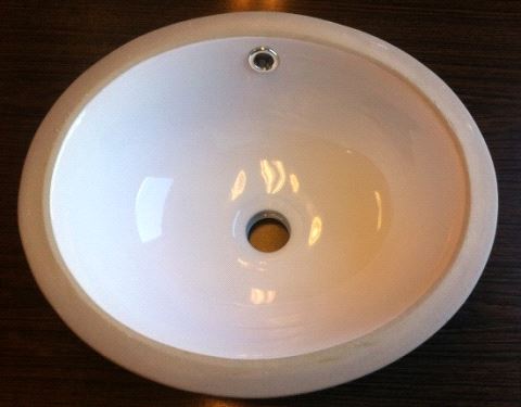 Porselensvask til bad for underliming, Oval 400 x 345 x 160mm. Leveres uten bunnventil. Hulldiameter ca. 46mm.
