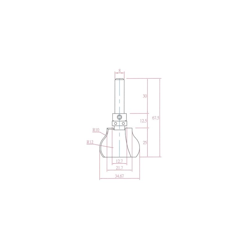 Diameter Ø34.67mm, tange s=8. Kulelager Ø12,7mm. Skjærlengde 25mm. Radie 9/11. Total lengde 67,5mm. Mer info