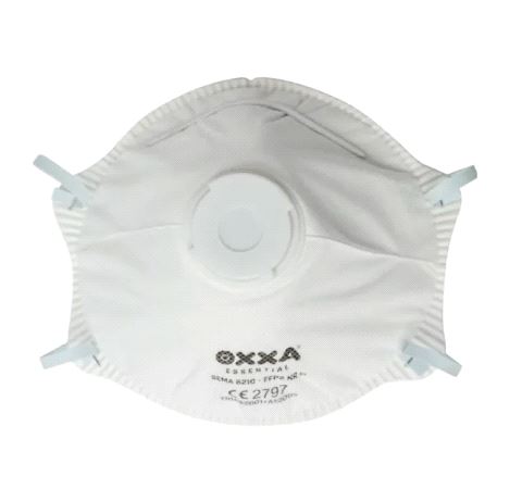 OXXA FFP2 Støvmaske, koppformet med ventil og neseklemme. Latexfritt pannebånd. Levert i kartong med 10 stk. Mer info