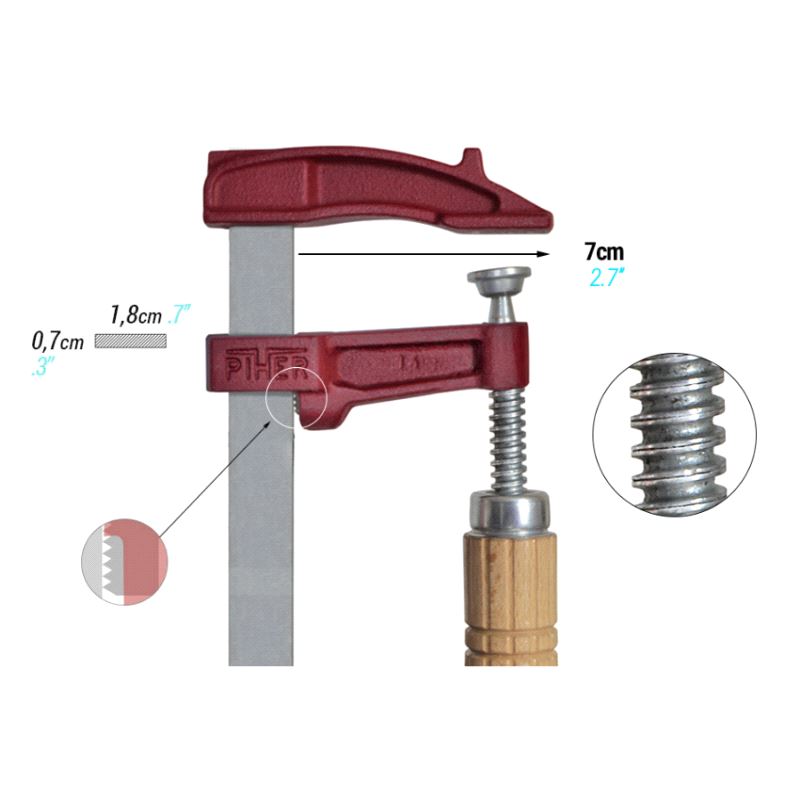 Tvinge med støpejernkjefter, åpne gjenger. Skaft av Bøk. Mer info HER
