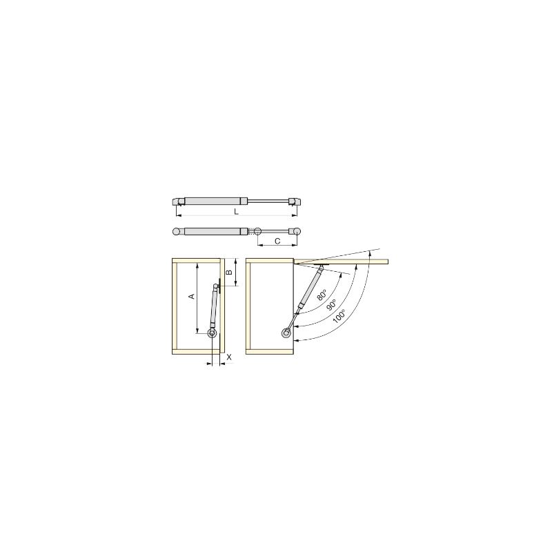 Gassfjær Emuca Opp 180mm 5 kg.