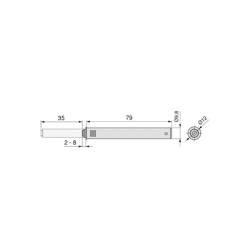 Utkaster Ø10mm. Med magnet. Lengde 80mm i utgangsposisjon, skyver 38mm. Justerbar fra fuge 2,5 til 6,5mm. For innboring, eller i kombinasjon med holder. Mer info
