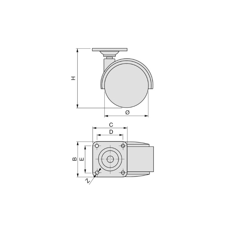 Trinse med brems. Total høyde 65mm, total bredde 44mm. Roterende. Mer info HER