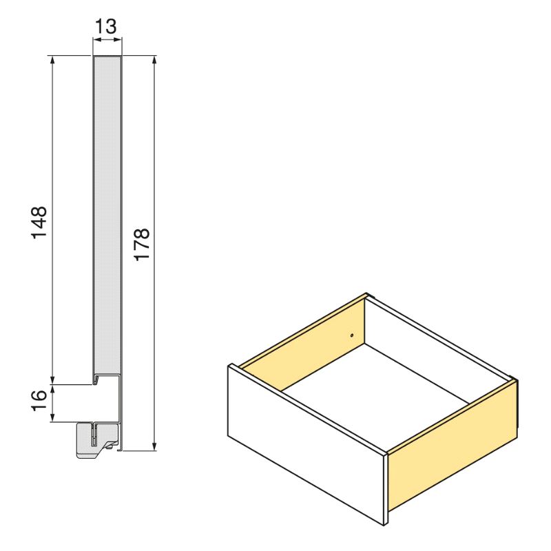 Skuffesider H=185mm