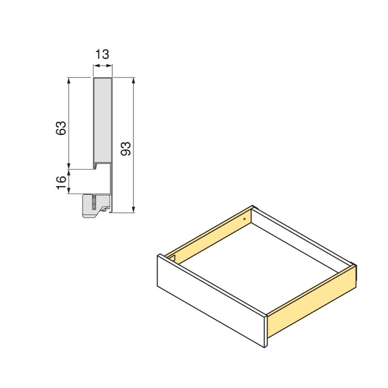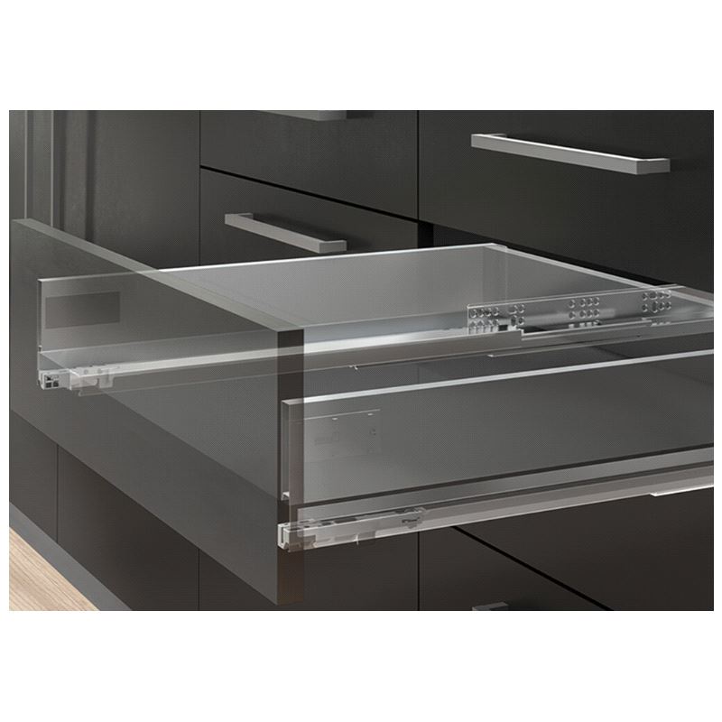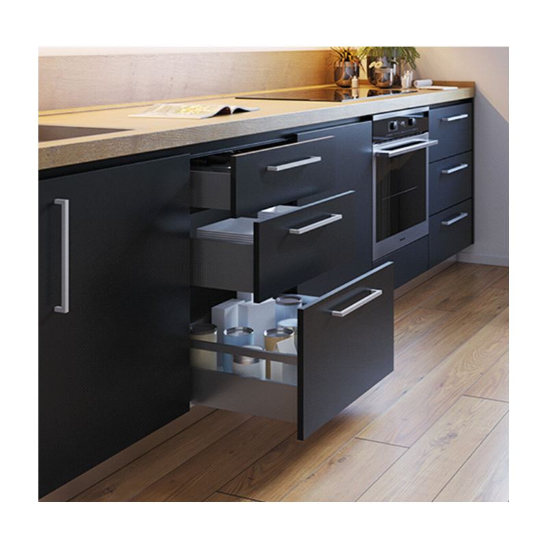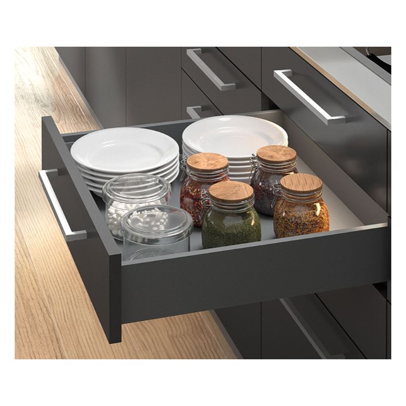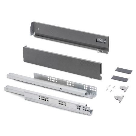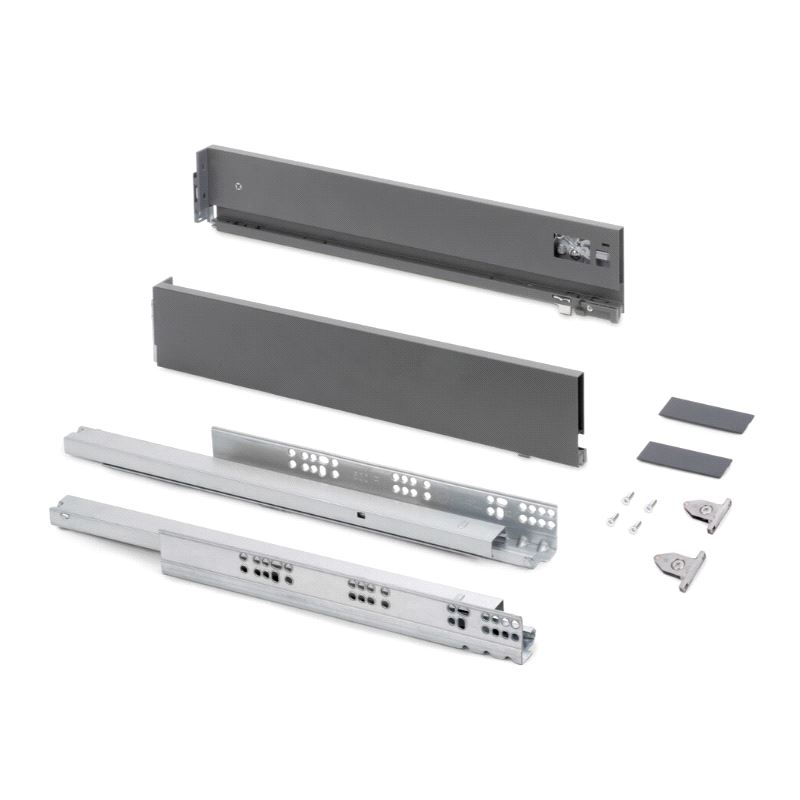 Emuca Vertex Skuffesider og skinner. Sett inneholdende skuffesider, skinner og nødvendige braketter. Bæreevne 40 kg. Fulluttrekk og demping. Tilpasset materialtykkelse 16mm i bunn og bakstykke. Mer info HER