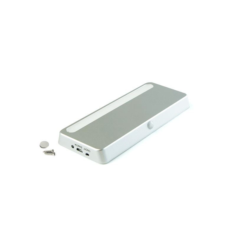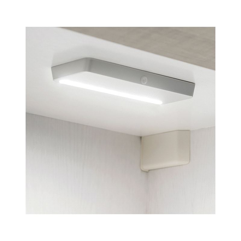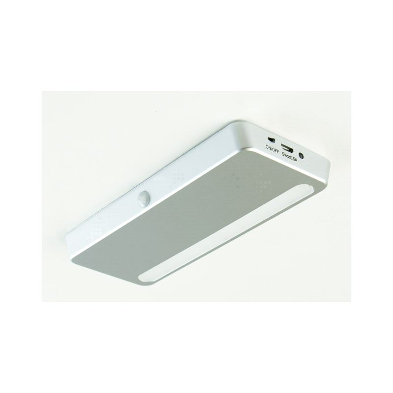LED Skaplampe 150 x 65mm med bevegelses-sensor. Oppladbar via Micro USB B kabel ( mobillader ). Mer info