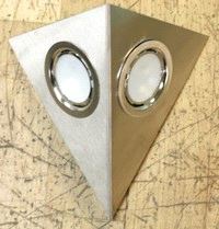2 stk. 12V 20W Halogen lamper montert i børstet stål brakett. Total høyde 170mm. Levert med pærer
