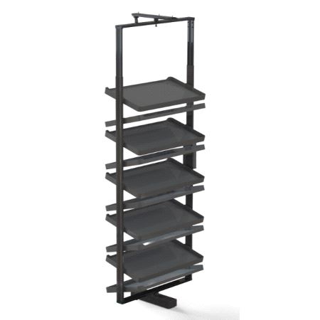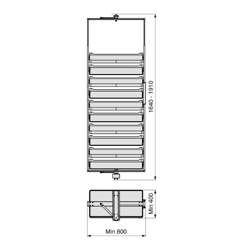 Roterende Skoskap-rack fra Emuca. Minste innvendige bredde 800mm, minste dybde 400mm. Høydejusterbar 1.640 til 1.910mm. Mer info