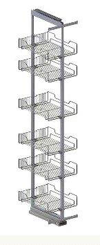 Høyskaputtrekk for skap med 400mm utvendig skrogbredde. Høyderegulerbar 1.900 til 2.300mm. Max. belastningsvekt 80 kg. Skinner med dempefunksjon. Mer info