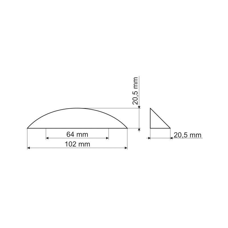 Total bredde 102mm, høyde 20mm