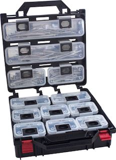 Utendørs C4 høykvalitets skrue med rillet undersenk, vokset overflate og borspiss. Godkjent av Svenske Stats Provanstalt med 2.600 timer i saltkammertest. Totalt 950 skruer i størrelser fra 4 x 30 til 6 x 100mm. 6 stk. torx bits medfølger.